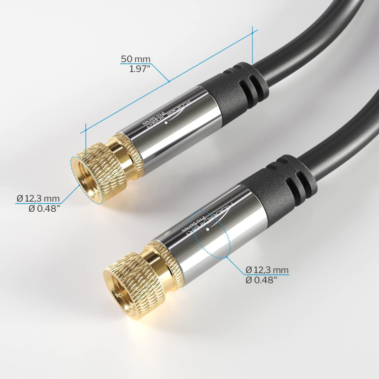 کابل کواکسیال KabelDirekt با طول ۲ متر (۶.۶ فوت) گزینهای حرفهای برای انتقال سیگنالهای صوتی و تصویری با کیفیت بالا در سیستمهای تلویزیون و ماهواره خانگی است. این کابل از کیفیت ساخت بالا با کانکتورهای فلزی نوع F بهره میبرد که اتصالی پایدار، مقاوم و ضد نویز فراهم میکند.
