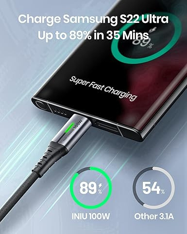 با کابل شارژ ۱۰۰ واتی برند INIU، نهایت سرعت شارژ را در کنار کیفیت ساخت حرفهای تجربه کنید. این محصول شامل دو عدد کابل USB-C به USB-C به طول ۶.۶ فوت (۲ متر) است که به شما امکان شارژ سریعتر و کارآمدتر دستگاههایی مانند لپتاپ، گوشی، تبلت و کنسولهای دستی را میدهد.