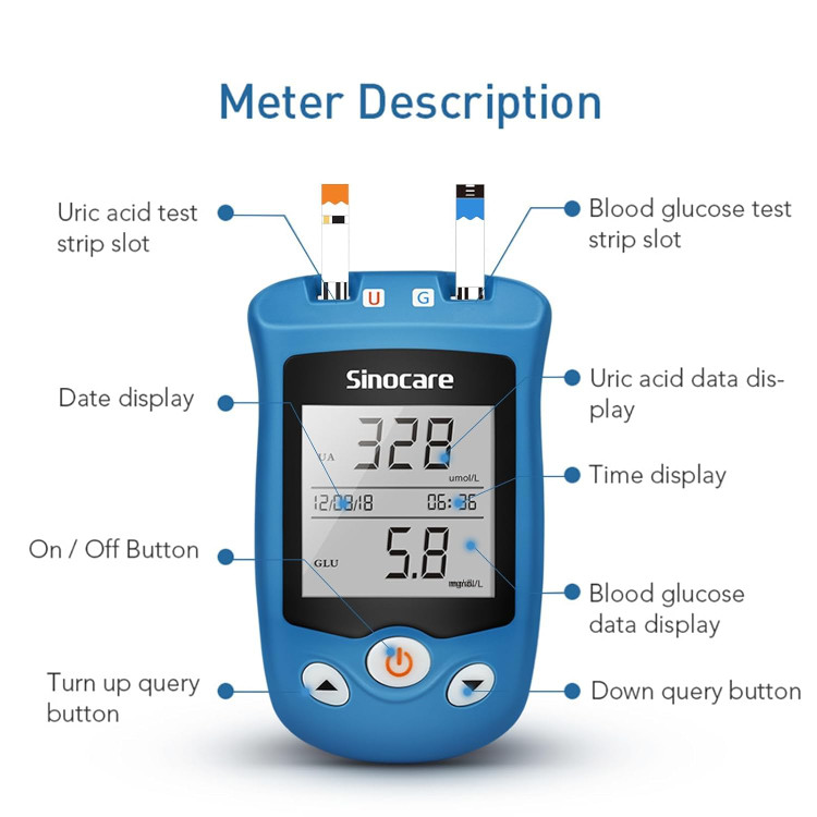 کیت تست چندمنظوره Sinocare Safe AQ UG یک انتخاب هوشمندانه برای افرادی است که نیاز به بررسی منظم قند خون و اسید اوریک دارند. این دستگاه با طراحی دقیق و عملکرد دوگانه، توانایی تشخیص همزمان دیابت و نقرس را فراهم میسازد.