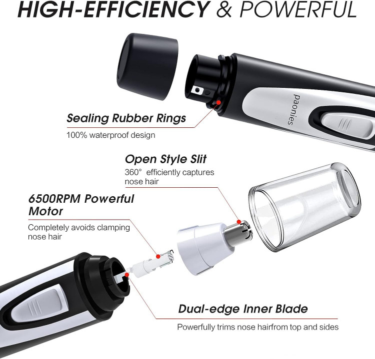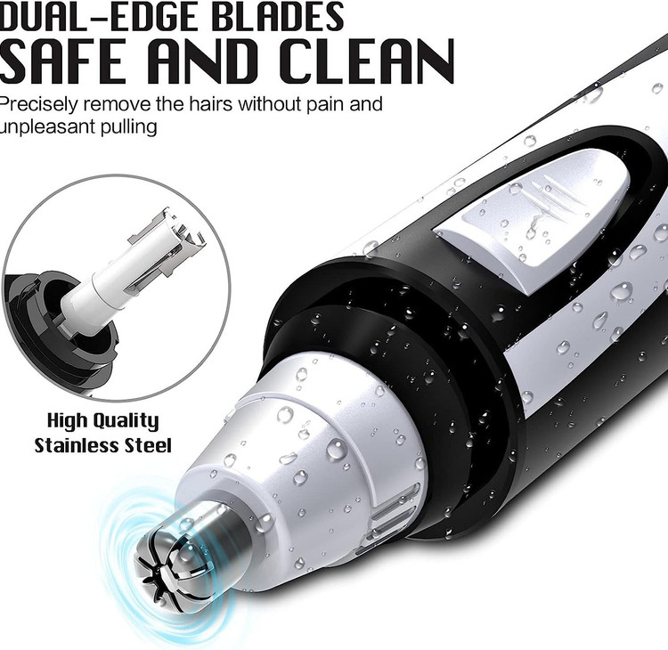 تیغه های چرخشی دو لبه از جنس استنلس استیل با کیفیت بالا می توانند موهای زائد بینی، گوش ها، ابروها، ریش و صورت شما را به سرعت و با دقت و بدون کشیدن دردناک از بین ببرند.