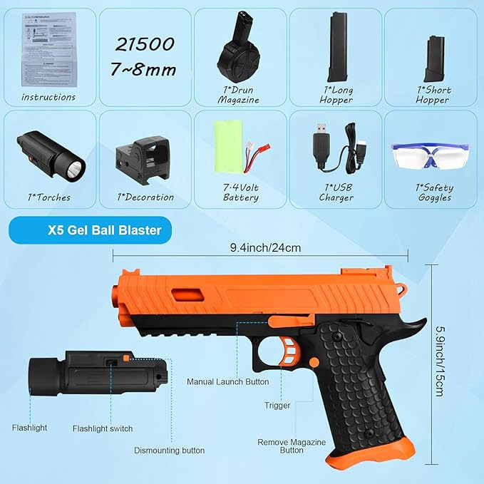 تفنگ ژلهای توماتونج مدل JM-X5 یک اسلحه بازی پیشرفته و ایمن است که برای بازیهای گروهی در فضای باز طراحی شده است. این محصول نسخه ارتقا یافته مدل JM-X2 با عملکرد بهتر و لوازم جانبی کامل ارائه میشود.