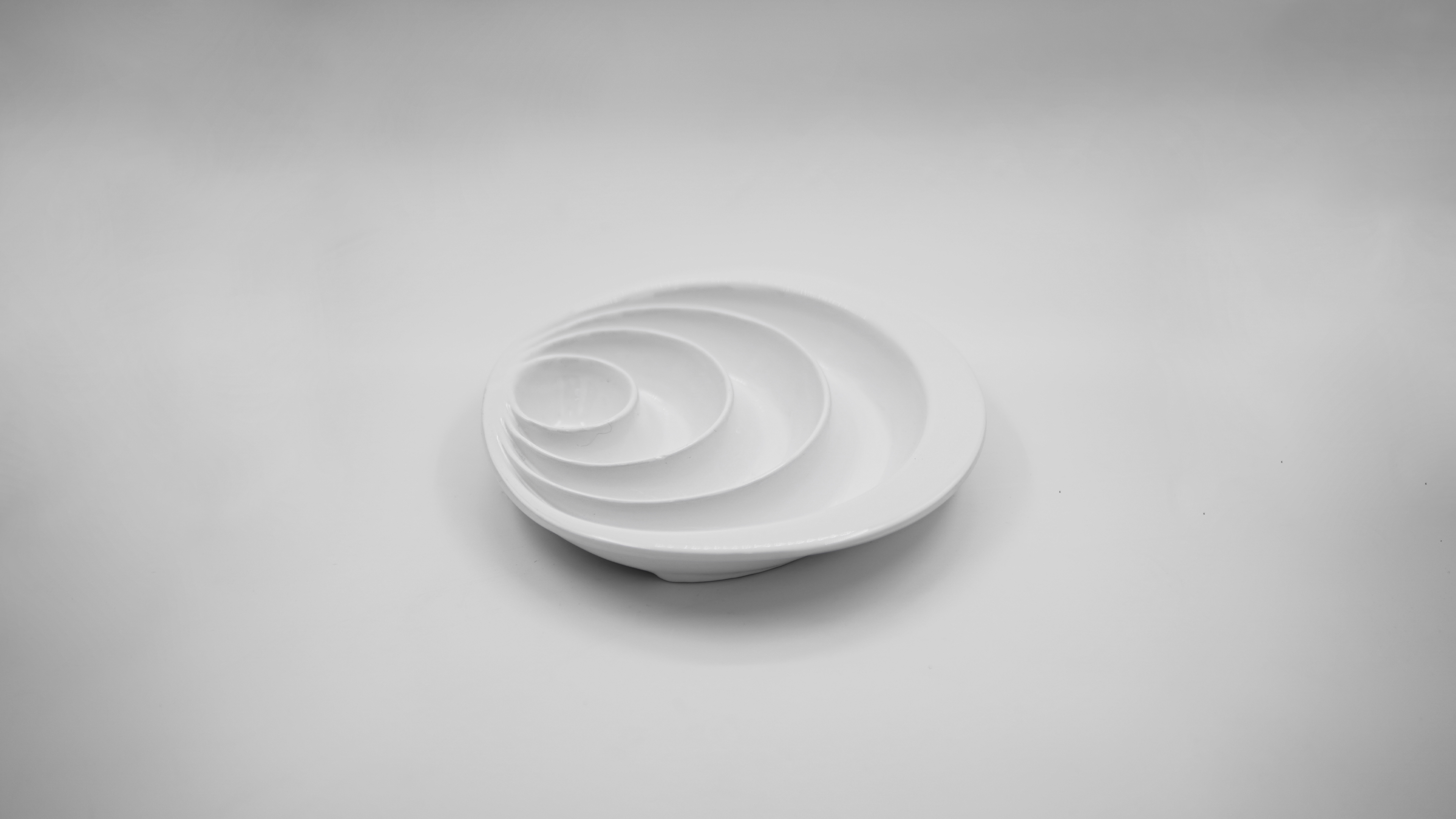 چیزی که این اردوخوری رو از بقیه مدلها متمایز میکنه، طرح موجدار و حالت دایرهدایرهیه که از یک سمت شروع میشه و تا انتهای ظرف ادامه داره. این فرم خاص، هم چیدمان خوراکیها رو زیباتر میکنه و هم میز پذیرایی رو متفاوتتر نشون میده.