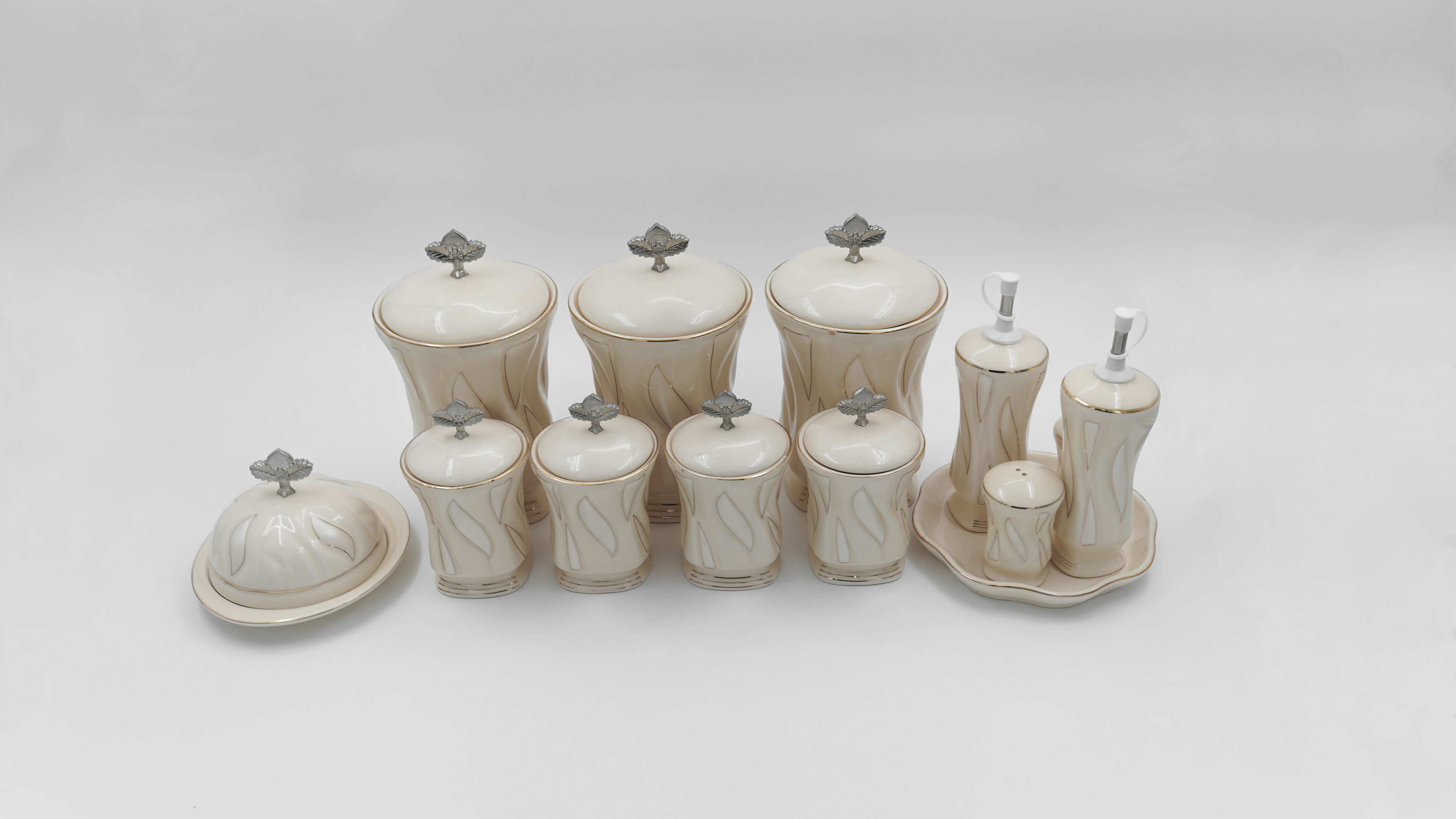 ترکیب سفید یا کرم ظروف با جزئیات طلایی جلوهای لوکس و مدرن به ست بخشیده است. طراحی مینیمال و پایه طلایی باعث میشود ست به راحتی با سایر ظروف آشپزخانه و میز پذیرایی هماهنگ شود و میز شما ظاهری حرفهای و مرتب پیدا کند.