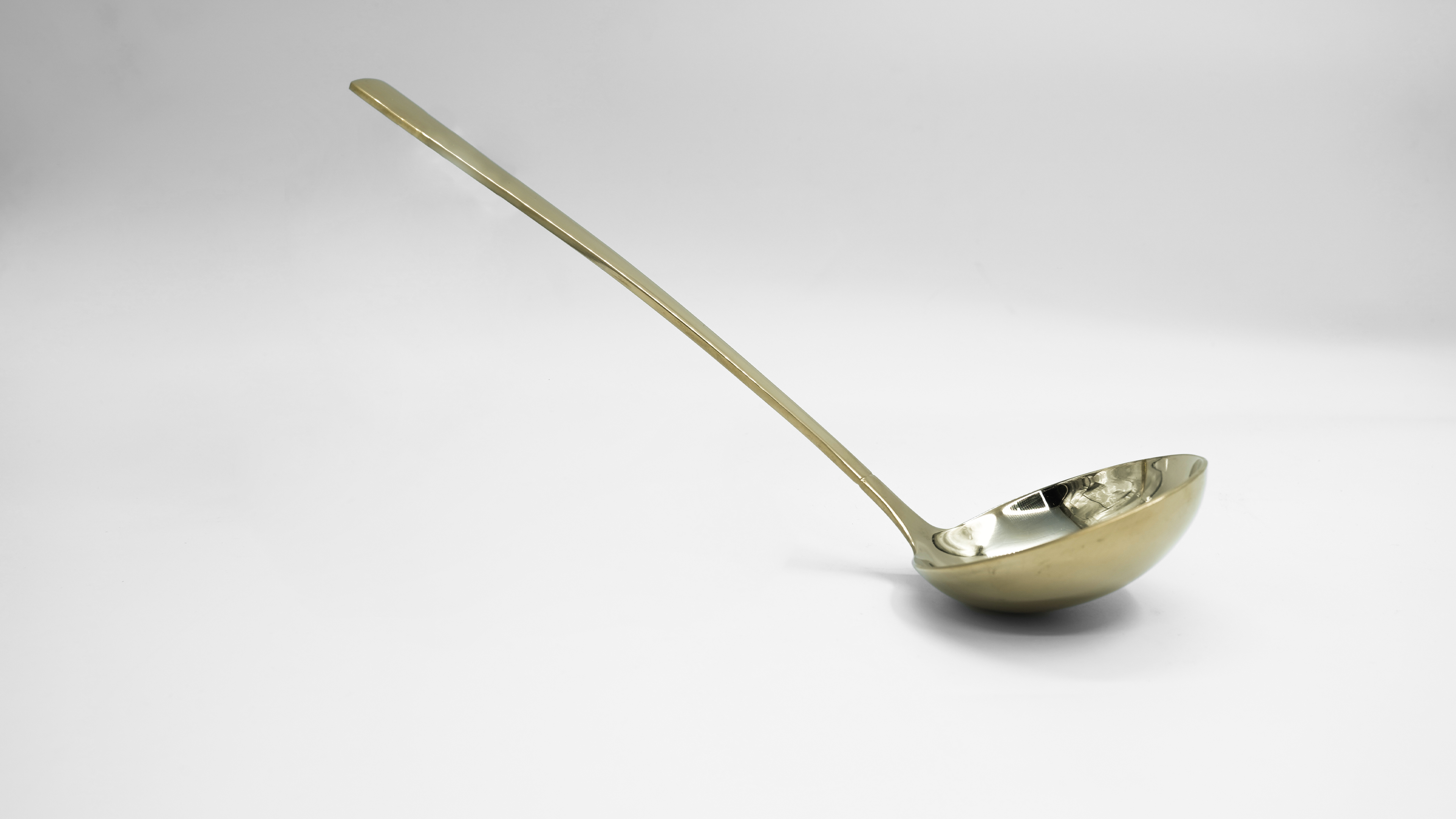 برای شستوشو از اسفنج نرم و شوینده ملایم استفاده کنید تا سطح براق و طلایی ملاقه سالها سالم باقی بماند