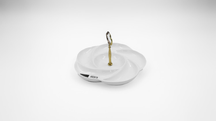 ظرف به شکل گل رز سهبعدی طراحی شده است؛ گلبرگهای بیرونی با جزئیات طبیعی و مرتب ساخته شدهاند و وسط ظرف یک دسته طلایی قرار دارد تا جابهجایی اردوخوری بدون لمس بخش داخلی ظرف ممکن باشد. این طراحی مدرن و شیک، ترکیبی از زیبایی و کارایی را ارائه میدهد و میز پذیرایی شما را لوکس جلوه میدهد.