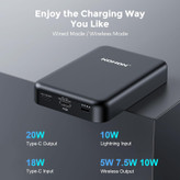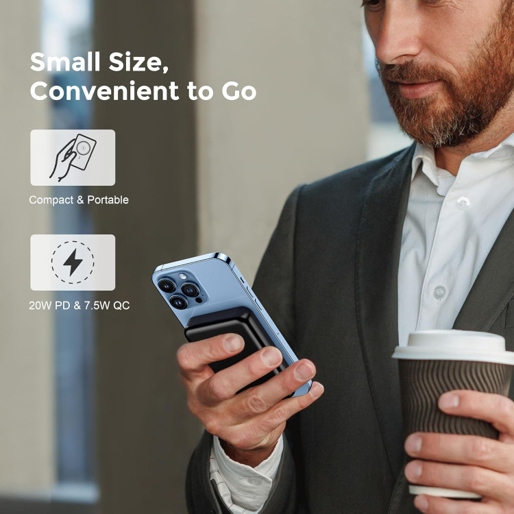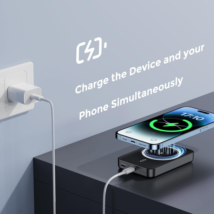 شارژ مغناطیسی بی سیم: شارژ را با فناوری نوآورانه مغناطیسی بی سیم تجربه کنید. برای تجربه شارژ بدون دردسر، دستگاه های خود را به راحتی وصل کرده و شارژ کنید. ظرفیت باتری 10000 میلی آمپر: با ظرفیت باتری 10000 میلی آمپر ساعتی، پاوربانک دستگاه های شما را برای مدت طولانی شارژ نگه می دارد. در طول روز متصل و روشن بمانید. شارژ سریع 20 واتی: پاوربانک قابل حمل Mag-safe دارای قابلیت شارژ سریع 20 واتی و پشتیبانی از PD3.0، خروجی 20 وات نوع C است که از تحویل سریع و کارآمد برق اطمینان حاصل می کند. متصل بمانید و در کمترین زمان روشن شوید. شارژ بی سیم 7.5 وات: پاوربانک قابل حمل مغناطیسی آیفون از شارژ بی سیم با خروجی حداکثر 5 وات/7.5 وات/10 وات پشتیبانی می کند. با دستگاه شارژ مغناطیسی پر از ویژگی های ما از آزادی شارژ مغناطیسی بی سیم لذت ببرید. اجازه ندهید سطح باتری پایین شما را متوقف کند. شارژ دو دستگاه به طور همزمان: دو گزینه برای شارژ وجود دارد، حالت بی سیم و سیمی. همچنین میتوانید هنگام شارژ کردن خود دستگاه از روش بیسیم برای شارژ تلفن خود استفاده کنید. تجربه شارژ یکپارچه و راحت را فراهم میکند. نیروی مغناطیسی برتر: به نیروی مغناطیسی فوق العاده محصول ما اعتماد کنید تا دستگاه شما را در هنگام شارژ به طور ایمن در جای خود نگه دارد. با اطمینان و بدون نگرانی در مورد قطع ارتباط حرکت کنید. سازگاری جهانی: محصول ما از طیف گسترده ای از دستگاه ها، از جمله گوشی های هوشمند، تبلت ها، هدفون های بی سیم و غیره پشتیبانی می کند. مناسب برای سری آیفون 12/13/14/15. از راحتی شارژ چندین دستگاه با یک دستگاه همه کاره لذت ببرید.