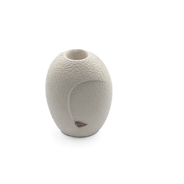 در طراحی این گلدان، فرم فرشته با خطوط ملایم و چهرهای آرام به تصویر کشیده شده است؛ فرمی که بهصورت ناخودآگاه حس پاکی، آرامش و لطافت را به بیننده منتقل میکند. ظرافت در اجرای جزئیات باعث شده این گلدان نهتنها یک وسیله دکوری، بلکه شبیه به یک اثر هنری کوچک باشد.
