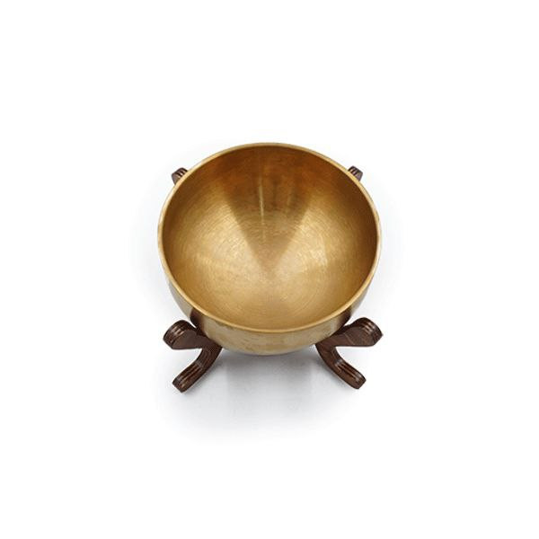 کاسه گرد طلایی مات پایه چوبی سایز بزرگ