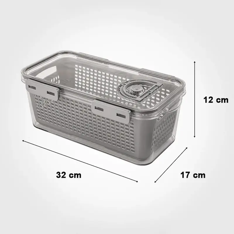 با ابعاد ۳۲ × ۱۷ × ۸ سانتیمتر و ظرفیت واقعی ۲ لیتر، این باکس به راحتی در قفسههای یخچال جای میگیرد و فضای هدررفته را به حداقل میرساند. طراحی مستطیلی آن امکان چیدمان منظم و بهینه را فراهم میکند؛ چه بخواهید چند بسته سبزی تازه، میوههای شستهشده، باقیمانده غذای خانگی یا حتی مواد پروتئینی مثل گوشت و مرغ را نگهداری کنید.