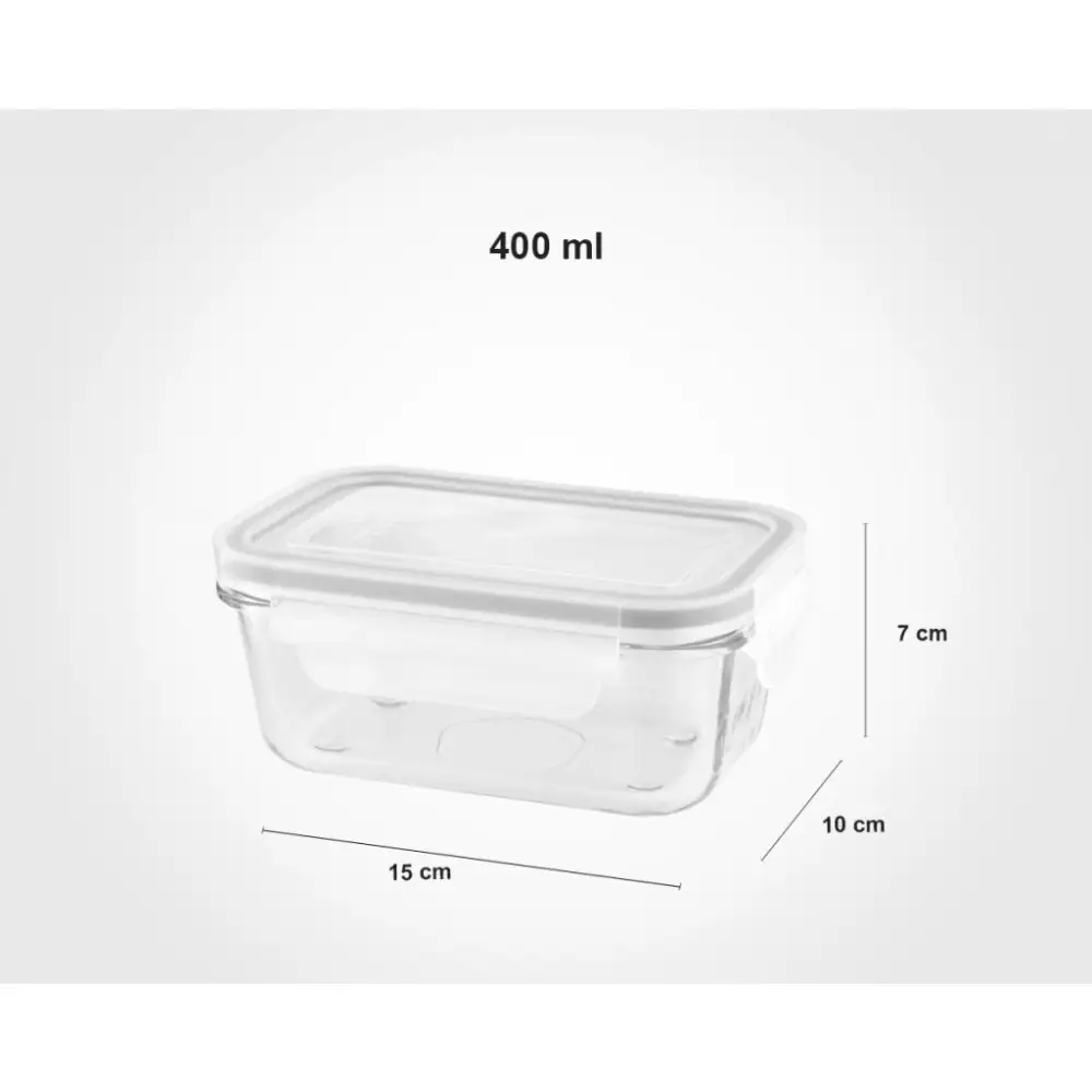 ظرف شیشهای مستطیلی دربدار ۴۰۰ میلیلیتری لیمون – کوچک، بهداشتی، ایدهآل برای نگهداری روزانه