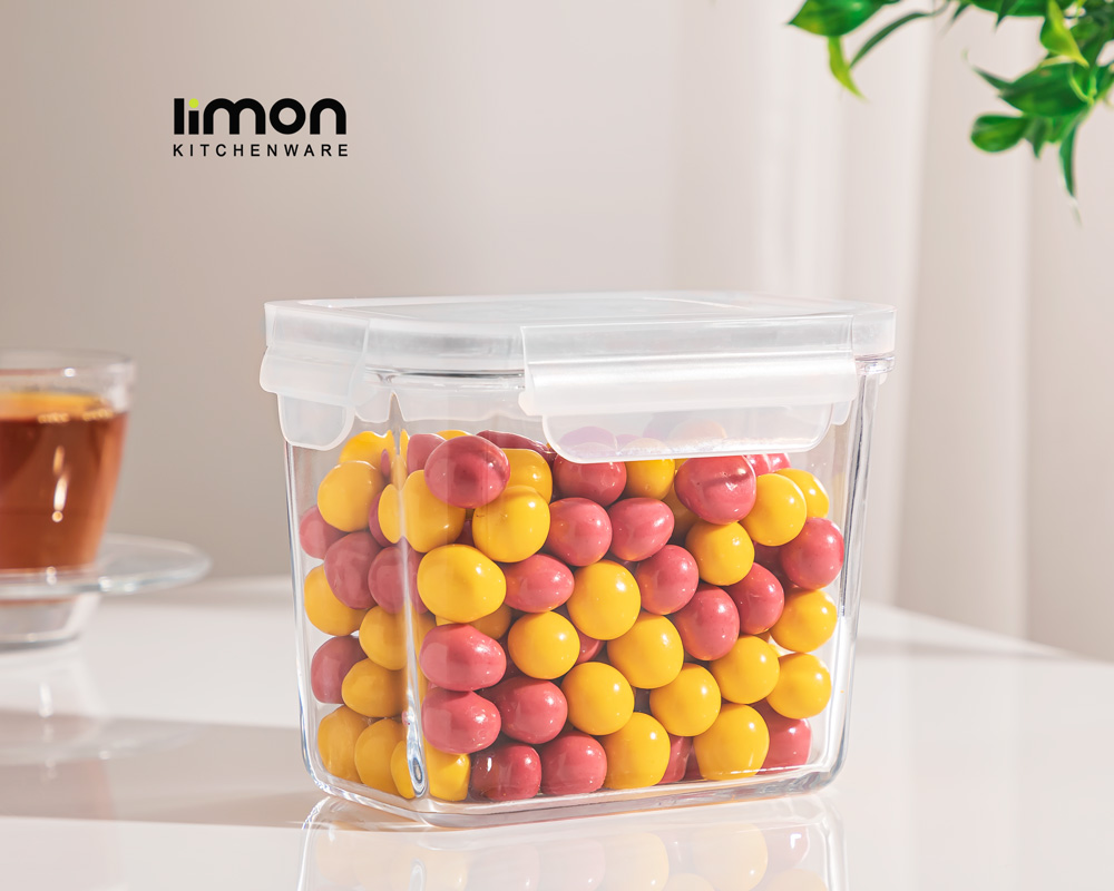 ظرف شیشهای مستطیلی دربدار ۹۲۰ میلیلیتری لیمون – ظرفیت عالی، بهداشتی و چندمنظوره