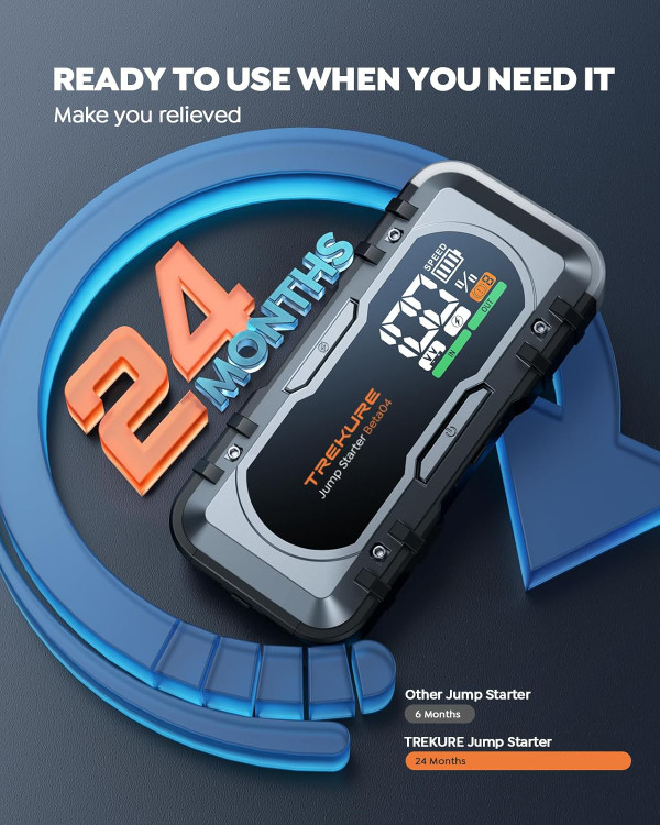 【 شارژ سریع دو طرفه 65 واتی 】 با فناوری شارژ سریع دو جهته ورودی/خروجی 65 واتی USB-C، شارژر باتری خودرو فقط 1 ساعت طول می کشد تا از 0% به 80% شارژ شود، در کمترین زمان کار می کند. 5 دقیقه و همچنین تلفن خود را تا 5 برابر سریعتر، سریعتر مانند رعد و برق، پشتیبانی از مک بوک و لپ تاپ، تغذیه کنید. باتری جامپ باکس به مدت 24 ماه ثابت می ماند و این اطمینان را به شما می دهد که همیشه با خیال راحت آماده کار هستید.