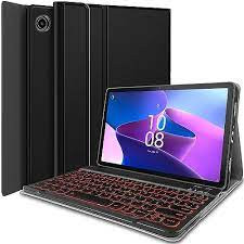 کیبورد JADEMALL برای Lenovo Tab M10 Plus نسل سوم نسل 2022، صفحه کلید بلوتوثی با نور پس زمینه 7 رنگ با پوشش محافظ برای Lenovo Tab M10 Plus 10.6 اینچ 2022 (TB-125F/128F)، مشکی