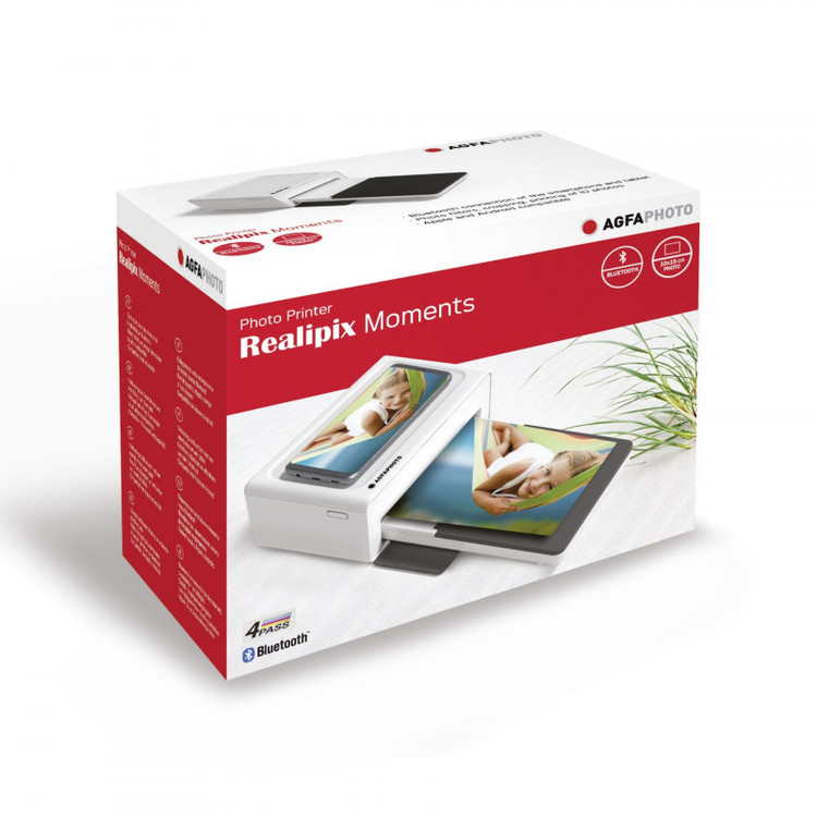 پرینتر چاپ سریع عکس Realipix moments برند آگفافوتو یک دستگاه بسیار جذاب و کار آمد برای کسانی است که علاقه به عکاسی و ثبت لحظات دارند با این امکان که شما می توانید عکس هایی که گرفتید را بلافاصله با اپلیکیشن AGFAPHOTO Realipix چاپ کنید که سایز کاغذ این پرینتر چاپ سریع سایز 15*10 سانتی متر با تراکم پیکسلی 300 dpi است. نکته دیگر این که این پرینتر جهت اتصال به تلفن همراه هوشمند شما از فناوری بلوتوث استفاده می کند که به راحتی می توانید پس از جفت سازی آن با تلفن خود به کمک برنامه آن به edit و پرینت عکس های خود بپردازید.