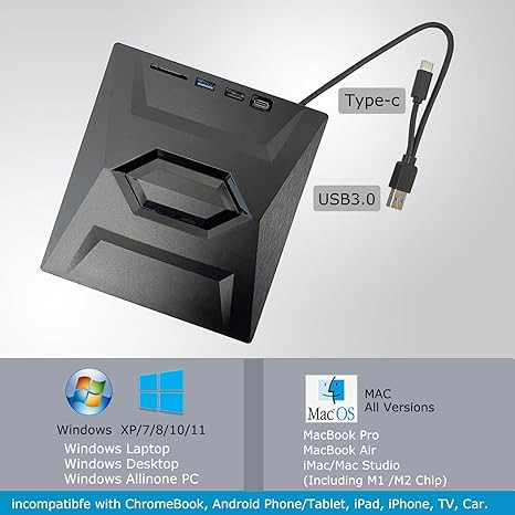 درایو CD DVD خارجی، USB C قابل حمل CD/DVD +/-RW درایو/DVD Player با کارت خوان SD USB 3.0 USB C Hub CD ROM رایتر سازگار با رایانه رومیزی لپ تاپ Apple Mac ویندوز سیستم عامل لینوکس