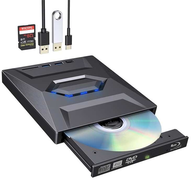 USB 3.0 USB C External 3D Blu-ray Writer BD-RE BD Burner Drive CD DVD Burner with SD Card Reader and USB 3.0+2.0+Type-C Input Ports for Laptop PC Windows 11/10/8/7, Linux, Mac OS