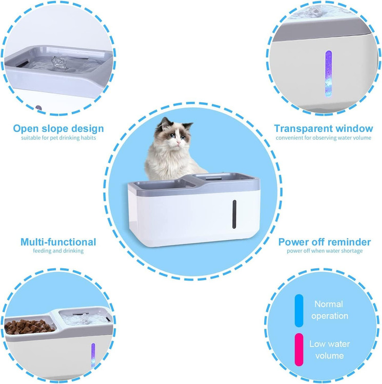 ظرف غذا اتوماتیک سگ و گربه با ظرفیت 2.8 لیتری یک راهکار عالی برای تأمین آب تازه و جاری برای حیوانات خانگی شماست. این محصول با پمپ هوشمند خود، آب را همیشه در جریان نگه میدارد تا حیوان خانگی شما به نوشیدن آب بیشتر تشویق شود.