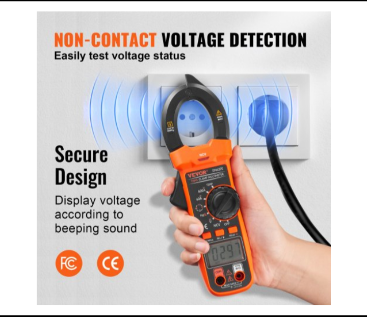 اندازه گیری بدون تماس (NCV): کنترل های الکتریکی سریع و ایمن را بدون احساس فشار ایجاد کنید! با استفاده از این مولتی متر گیره سنج می توانید قدرت میدان های الکترومغناطیسی را بدون دست زدن به هیچ سیمی اندازه گیری کنید. با یک سیگنال صوتی ساده نسبت به ولتاژ هشدار داده شود و سطوح ولتاژ را بدون تلاش تعیین کنید.