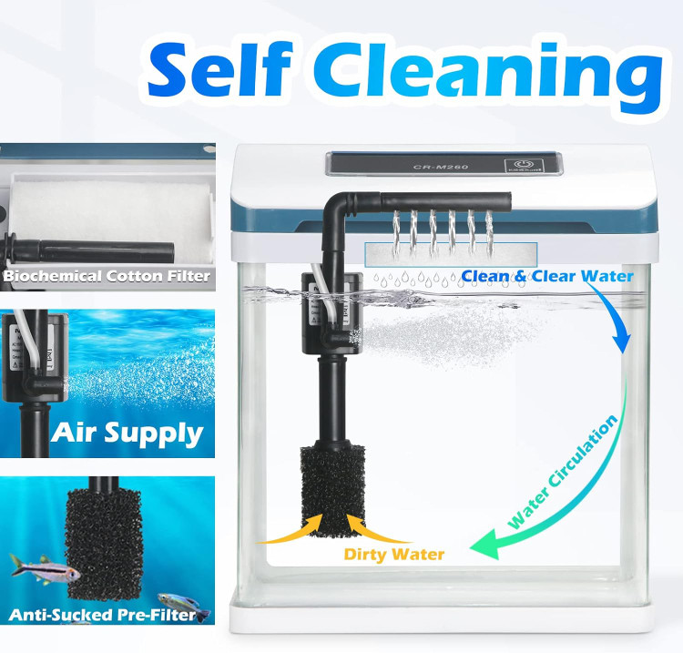 آکواریوم شیشهای 7.5 لیتری با طراحی مدرن و امکانات کامل، راهحلی ایدهآل برای علاقهمندان به آبزیان و تزئینات فضای کار و زندگی است. این محصول با سیستم فیلتراسیون داخلی و نورپردازی LED، محیطی سالم و زیبا برای ماهیهای کوچک ایجاد میکند.