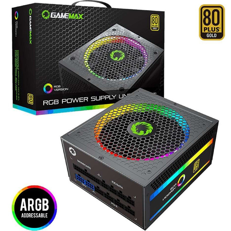 منبع تغذیه GameMax 1050W RGB با توان خروجی 1050 وات، گواهینامه 80 پلاس گلد و نورپردازی RGB جذاب، انتخابی ایدهآل برای سیستمهای گیمینگ حرفهای و سیستمهایی است که به توان بالا نیاز دارند.