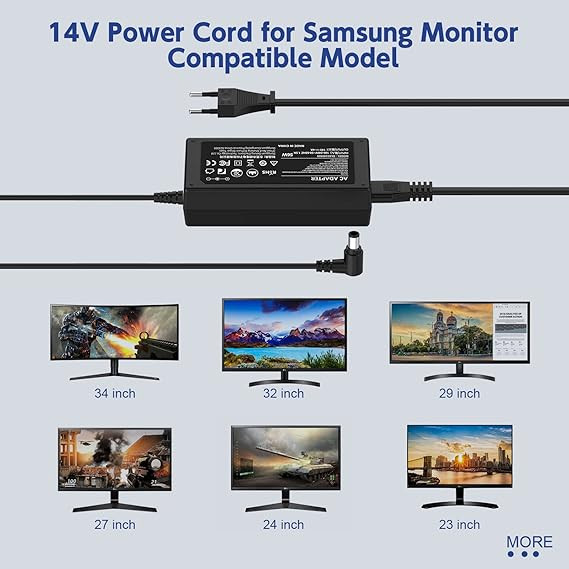 آداپتور 19 ولت سامسونگ، منبع تغذیهای با کیفیت و قابل اعتماد برای مانیتورهای LED و LCD سامسونگ است. این آداپتور با سازگاری گسترده، انرژی پایدار و ایمن را برای مانیتورهای سریهای U28E590D، S22D300HY، S27D390H، C24F396FHU و سایر مدلها تأمین میکند.
