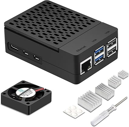 عنوان محصول: کیس Raspberry Pi 5 با فن، هیت سینک و درب قابل جدا شدن (فن 40 میلیمتری، مشکی)