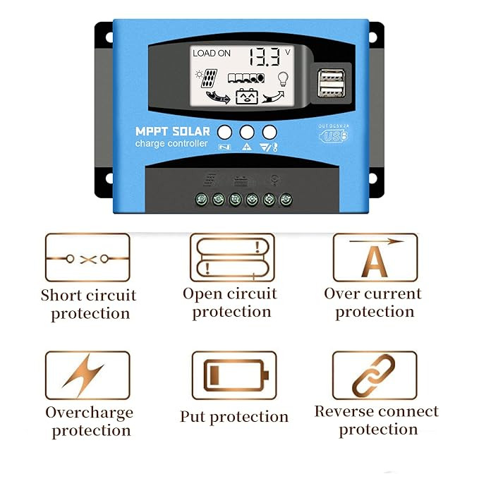 نمایشگر LCD: نمایش اطلاعات دقیق مانند ولتاژ، جریان و وضعیت شارژ.