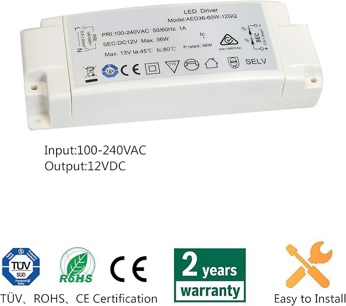 ترانسفورماتور LED ابیشن 36 وات منبع تغذیه AC240V به DC12V برای لامپهای MR16 و MR11 و G4