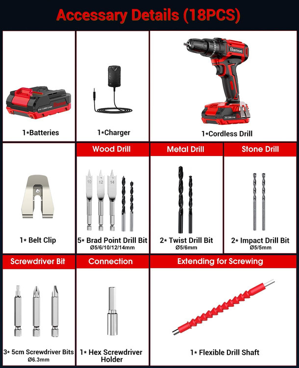 دریل بیسیم Bamse با قدرت 21 ولت و طراحی پیشرفته، گزینهای ایدهآل برای کارهای تعمیراتی و ساخت و ساز خانگی است. این مجموعه شامل یک دریل Hammer Drill با 25 حالت ضربهزن است که توانایی انجام کارهای مختلف را با گشتاور حداکثر 372 اینچ-پوند به شما میدهد. همچنین با باتری 2.0Ah و شارژر سریع، میتوانید بدون وقفه و با سرعت بالا به انجام پروژههایتان بپردازید. چاک بدون کلید 3/8 اینچی این دریل تعویض متهها را بسیار راحت میکند و با 2 سرعت متغیر، انعطافپذیری بیشتری در انجام کارها خواهید داشت. بهعلاوه، این مجموعه شامل 14 عدد مته و پیچگوشتی است که به شما این امکان را میدهد که انواع مختلف پروژهها را با دقت و سرعت انجام دهید.