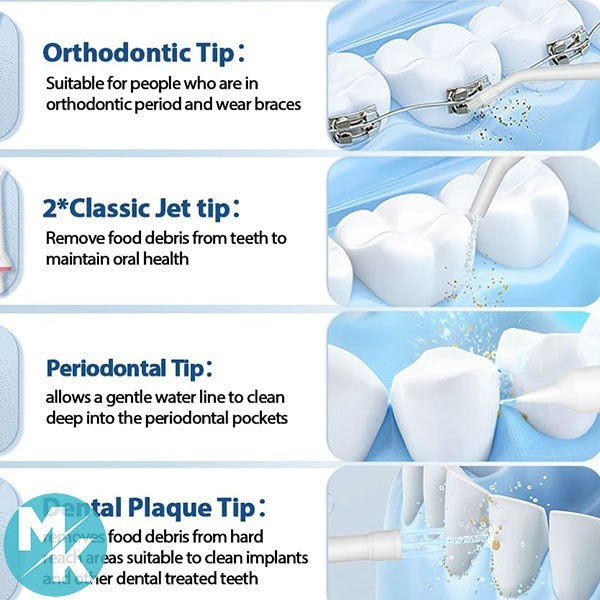 دندانها را عمیق تمیز میکند و سلامت لثه را بهبود میبخشد - این پالسر دندانی قابل حمل بهداشت دهان و دندان را بهتر میکند. در مقایسه با مسواک زدن معمولی، شستشو دهنده دهان می تواند به طور موثر 99.99 درصد از پلاک و باقی مانده مواد غذایی بین دندان ها و لثه ها را از بین ببرد، سلامت لثه ها را بهبود بخشد و گردش خون را بهبود بخشد. همچنین برای کاربران دارای ایمپلنت، بریس، تاج، بریج و التهاب لثه مناسب است.