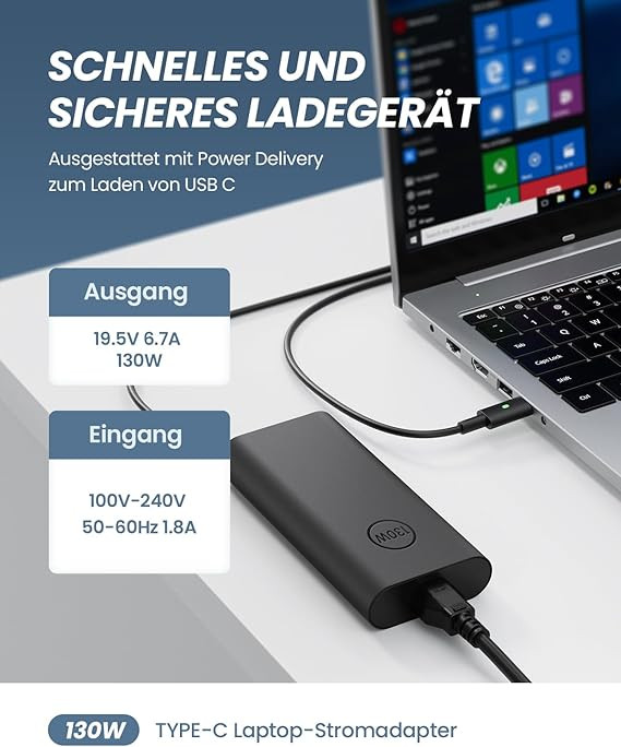 آداپتور ۱۳۰ وات USB-C شارژ سریع مخصوص لپتاپهای سری Dell XPS، Latitude و Precision است که به شما امکان میدهد لپتاپ خود را سریعتر از همیشه شارژ کنید. این آداپتور با فناوری شارژ سریع USB-C طراحی شده و برای لپتاپهایی که از پورت USB-C پشتیبانی میکنند، کاملاً سازگار است. با توان خروجی ۱۳۰ وات، قادر است لپتاپهای قدرتمندی مانند Dell XPS 15 و XPS 13 را در زمان کوتاهتری شارژ کند. طراحی جمع و جور و سبک آن به شما این امکان را میدهد که آداپتور را به راحتی در کیف لپتاپ خود حمل کنید.