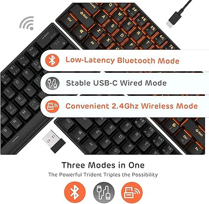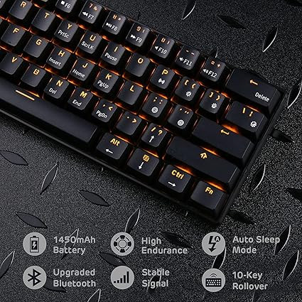 کیبورد RK ROYAL KLUDGE RK61 یک کیبورد مکانیکی بیسیم با طراحی جمع و جور 60 درصد است که برای استفاده در بازیها، تایپ سریع و انجام کارهای روزمره ایدهآل میباشد. این کیبورد با قابلیتهای سهگانه اتصال (بلوتوث ۵.۰، ۲.۴G و USB-C) به شما این امکان را میدهد که به راحتی آن را به هر دستگاهی متصل کنید. طراحی ۶۱ کلیدی آن فضای کمی را اشغال کرده و برای کسانی که به دنبال کیبوردی فشرده هستند، مناسب است.